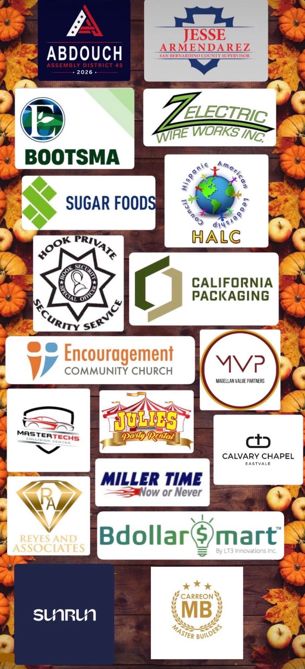 We are so grateful for the support of our Business Sponsors! A $500 tax-deductible donation will provide 10 families with a Thanksgiving meal and your business’s logo will be displayed on the Home Page of our website for a year and also at our event for all volunteers to be aware of your involvement and support!